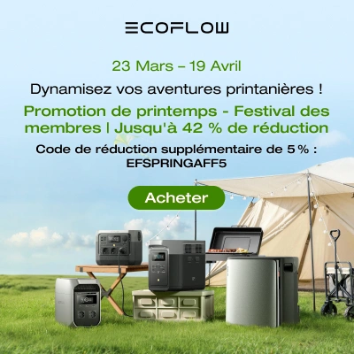 Les offres de printemps EcoFlow sont lancées — profitez de jusqu’à 45 % de réduction sur les stations d’énergie portables, panneaux solaires et solutions énergétiques pour la maison. Économisez jusqu’à 1 028 € sur les kits STREAM Ultra/Pro, parfaits pour l’alimentation de secours, les aventures en plein air ou pour réduire vos coûts énergétiques. Offres à durée limitée — achetez maintenant avant qu’elles ne disparaissent.